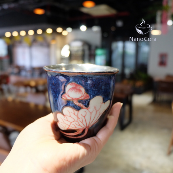 LY SỨ KHẮC HOA SEN MEN HỎA BIẾN TRÁNG NANO BẠC